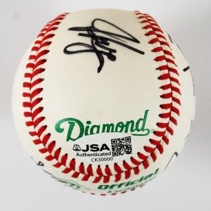 This baseball (Diamond brand), autographed by the band Rev Theory, is a unique collectible for any baseball or music enthusiast. Signed in black felt tip, the baseball features the autographs of five of the band members. Signers include: Rich Luzzi, Rikki Lixx, Dave Agoglia, Matt McCloskey and Julien Jorgensen. This item comes with a Certificate of Authenticity (COA) from JSA, ensuring the legitimacy of the signature and inscriptions. An exceptional piece that commemorates both music and sports, it is a must-have for collectors.