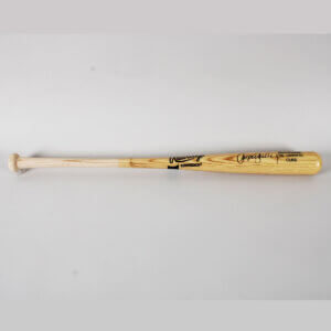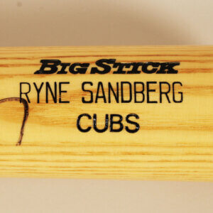 Offered here is a Ryne Sandberg signed player model bat. The signature is in black felt tip and grades “8”. Authentication: JSA Basic Cert & Sticker