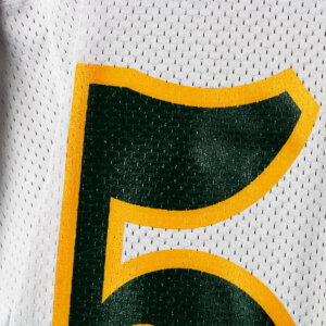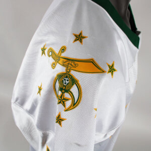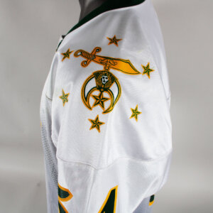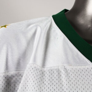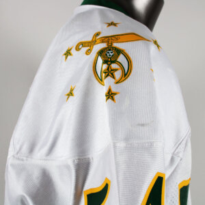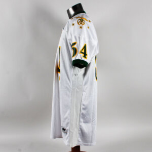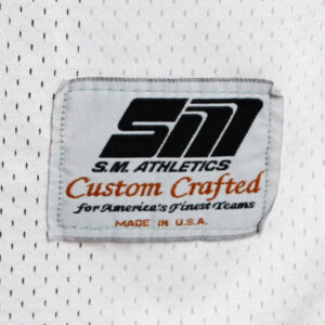 Presented is a game worn Shrine Bowl football jersey. Made by S.M. Athletics it features the logos on the sleeves and central chest. The player’s number 54 was also screened on. No name on back. Jersey shows moderate wear with some scrapes etc. Most likely worn by an offensive lineman or defensive player that played for the Florida Gators.