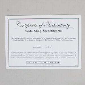 Be the first to review “Soda Shop Sweet Hearts Cel Mickey & Minnie Mouse 1999 Disney Sericel – COA”