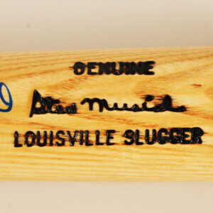 Offered here is a Stan Musial signed player model bat. The signature is in blue felt tip and grades “10”. Authentication: JSA Basic Cert & Sticker