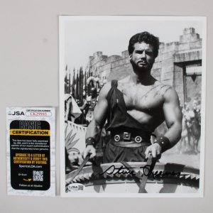 This listing features an 8×10 black-and-white photograph signed by the renowned actor and bodybuilder, Steve Reeves. Accompanied by a Certificate of Authenticity from JSA, this item guarantees the legitimacy of the autograph. The photo showcases Reeves in a striking pose, reflecting his iconic status in the film industry. This collectible is a must-have for enthusiasts of classic cinema and memorabilia.