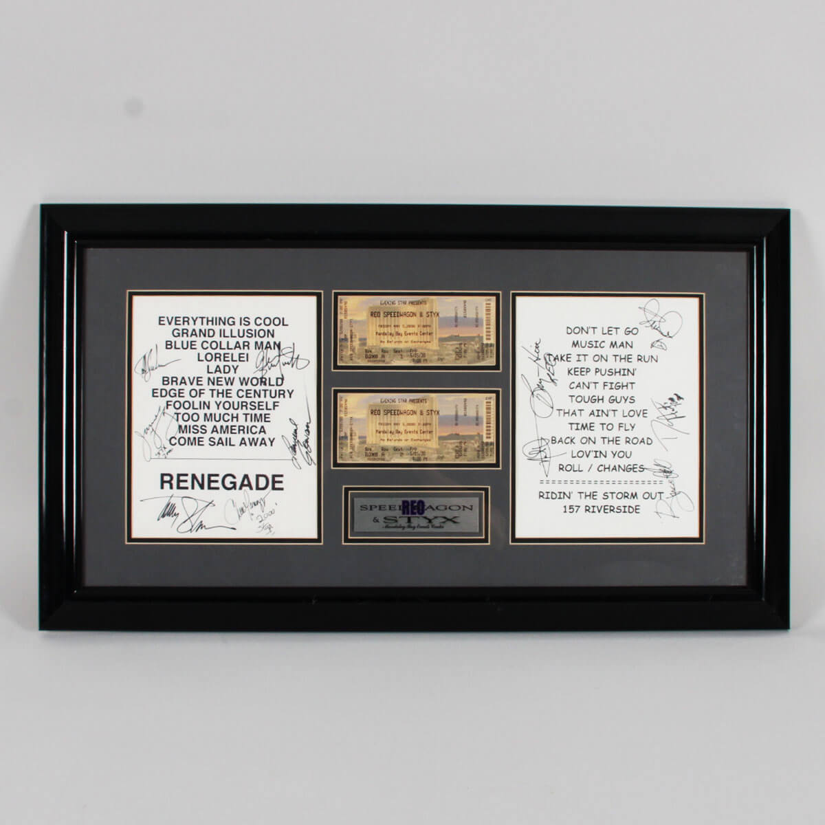Be the first to review “Styx & REO Speedwagon Signed Set Lists Display” Cancel reply