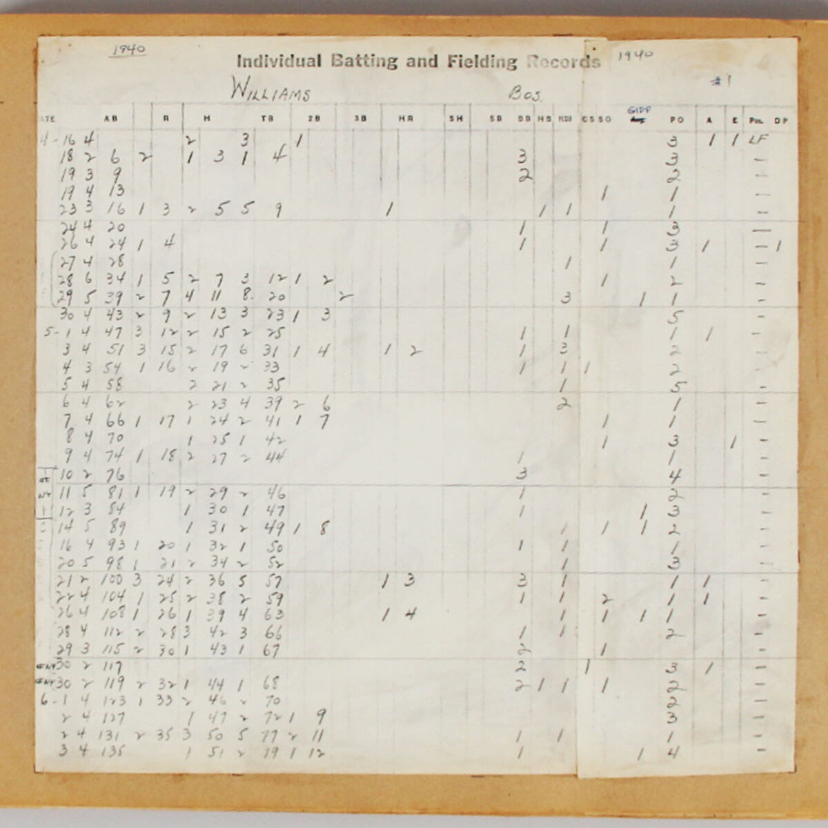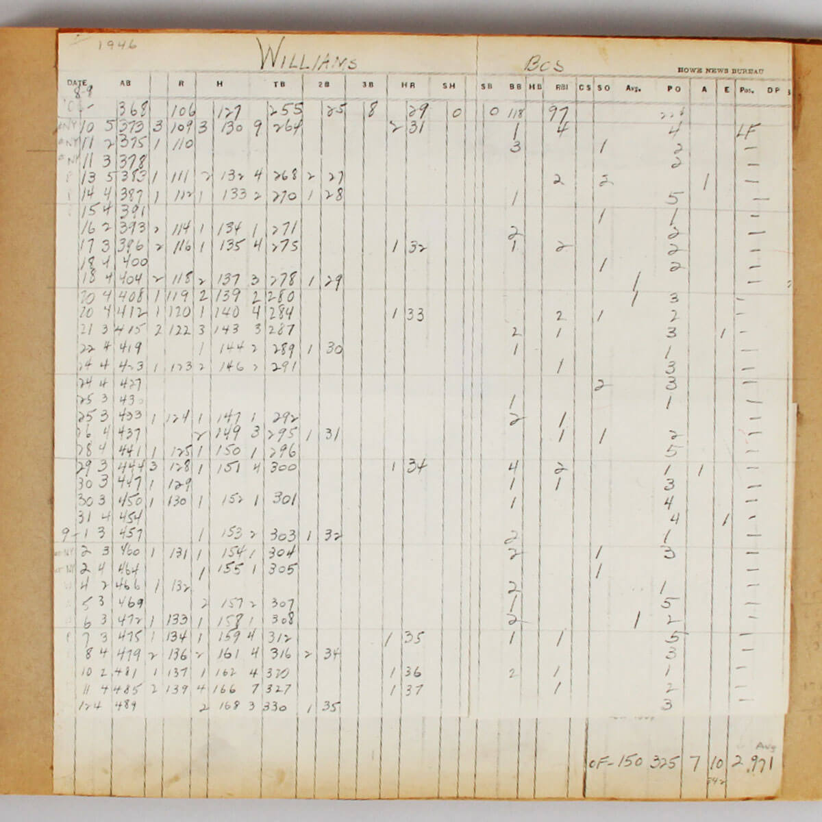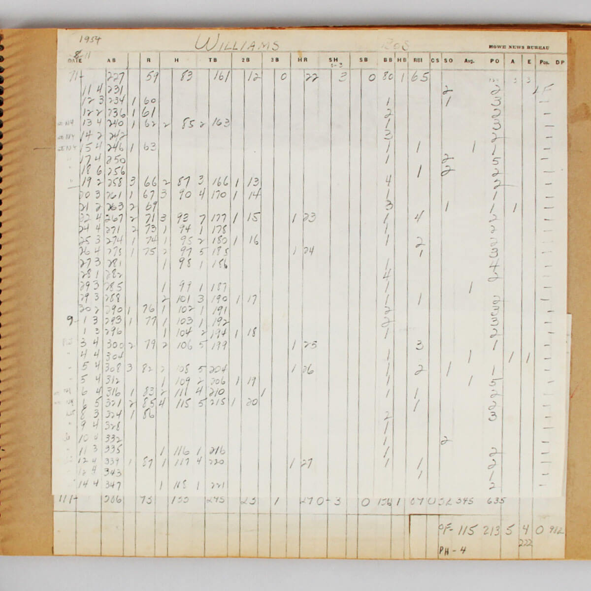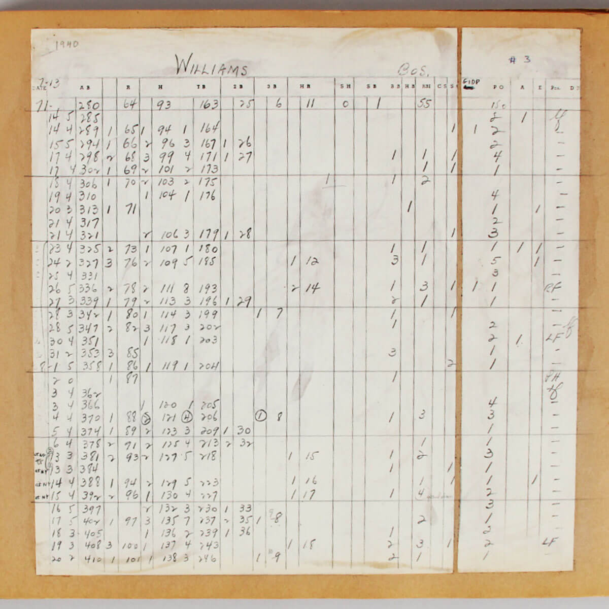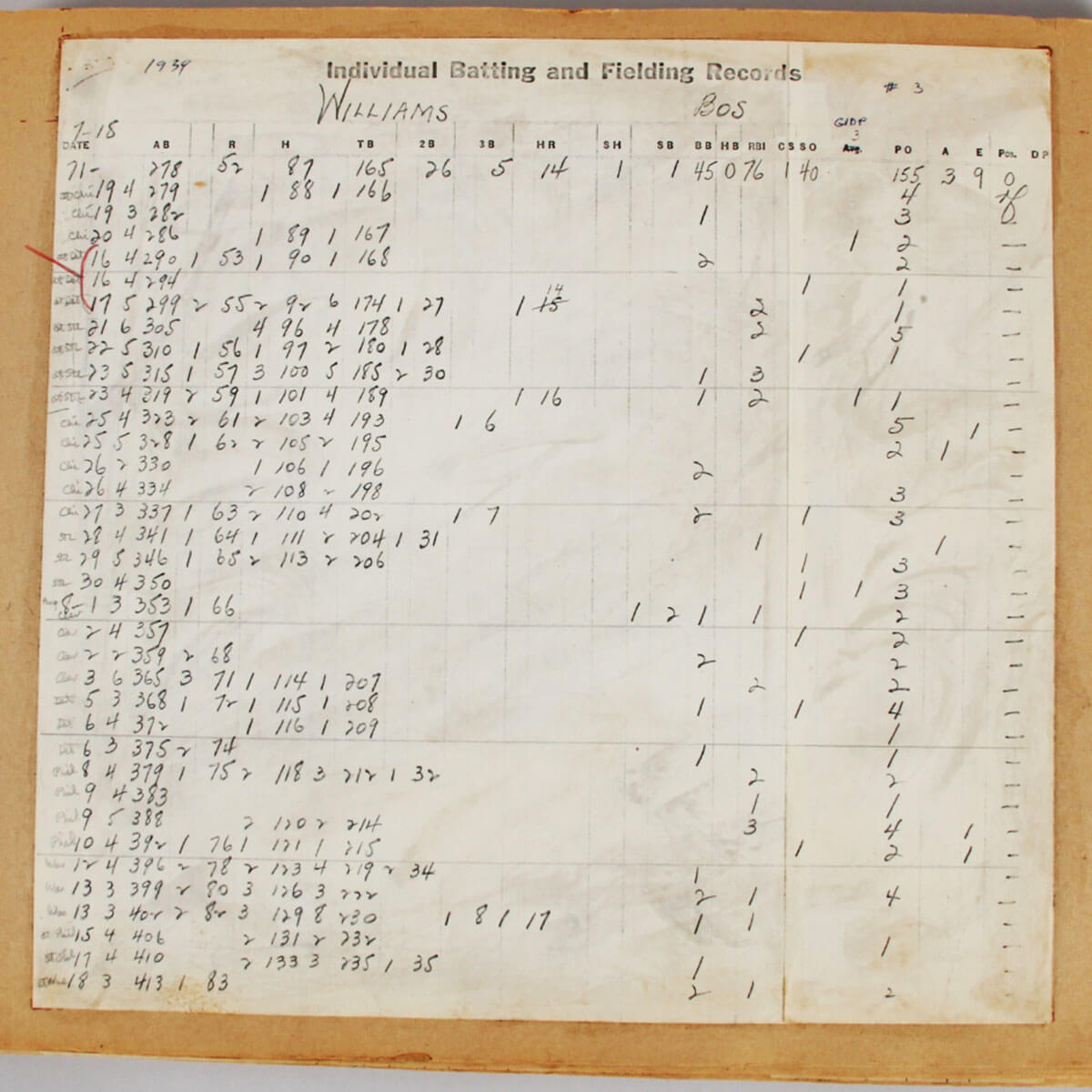 Ted Williams Batting Statistics Book 1939-1960 (60 Pages)