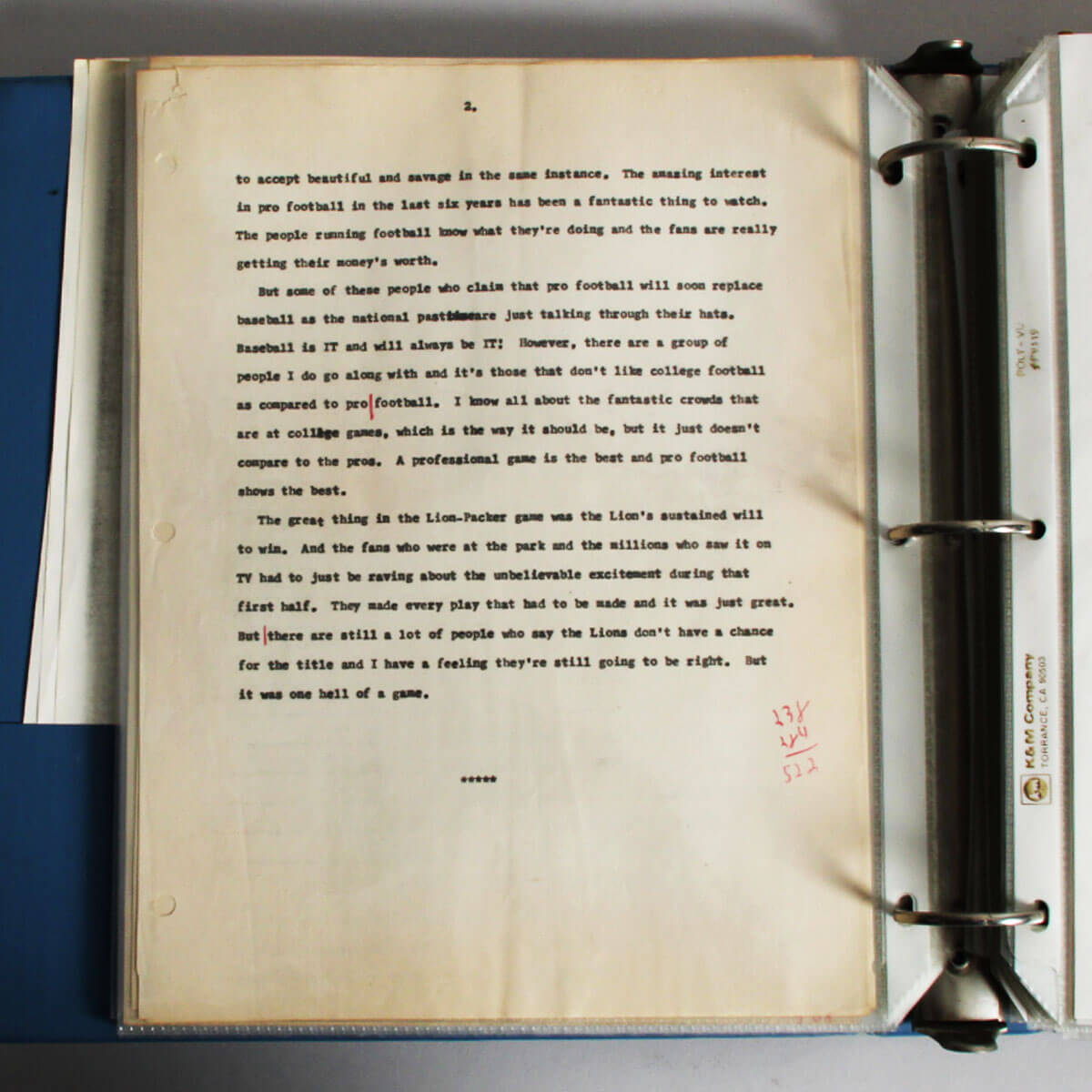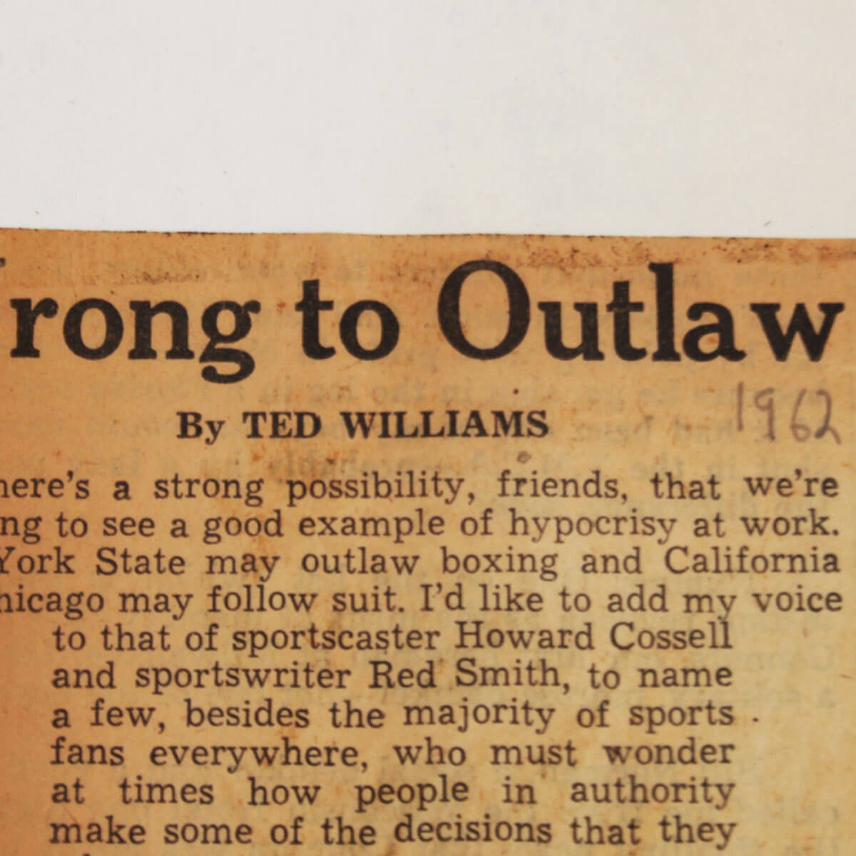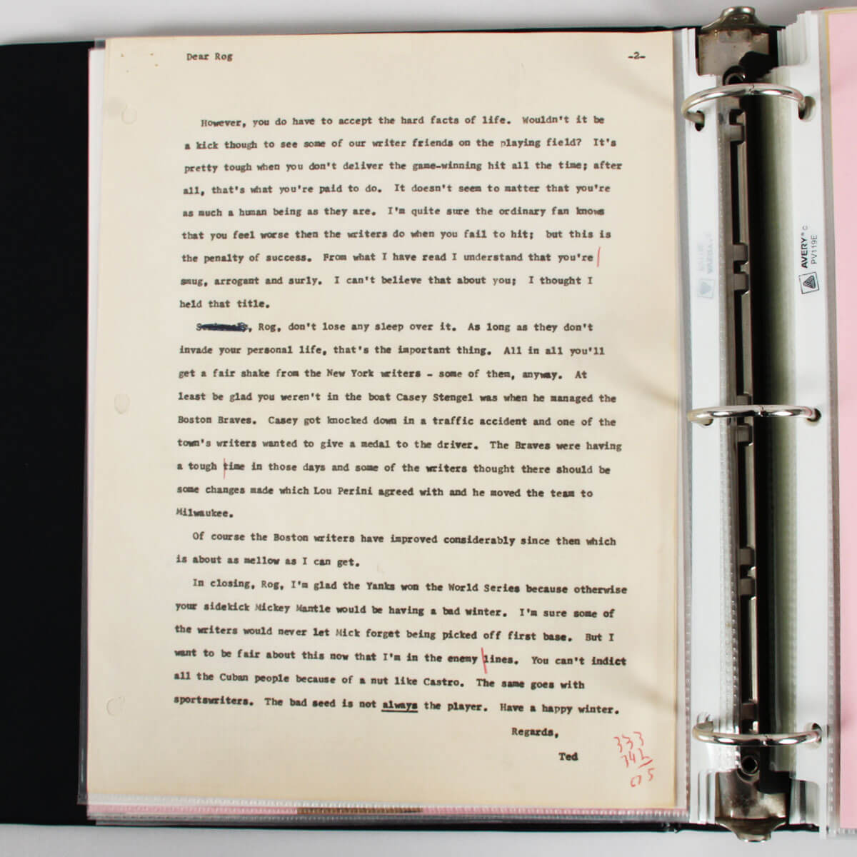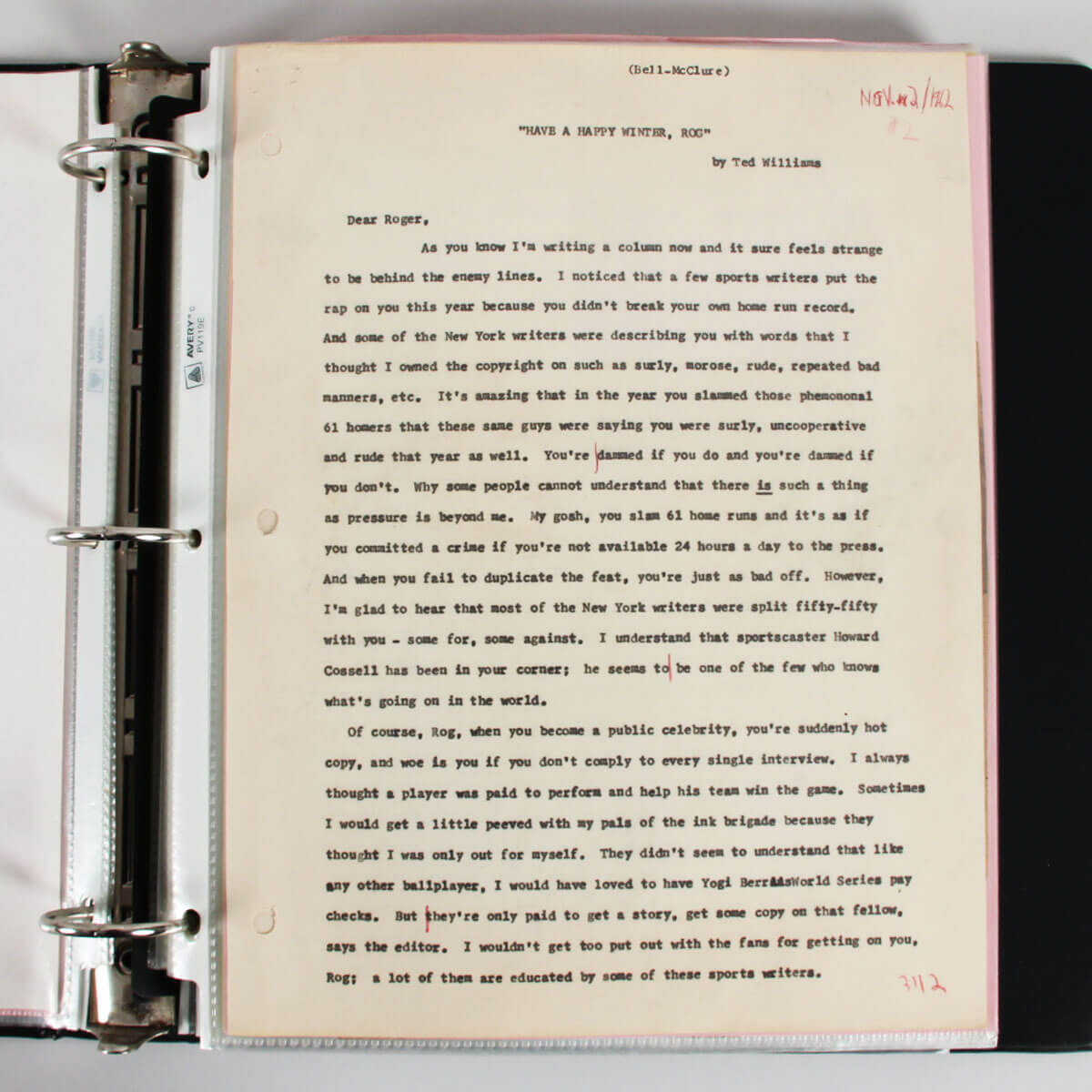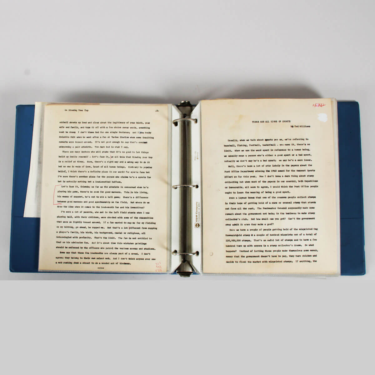 Offered for sale is a Ted Williams Personal Sports Collection from the 1960s. There are two full notebooks with clippings from Ted’s playing games and newspaper clippings.