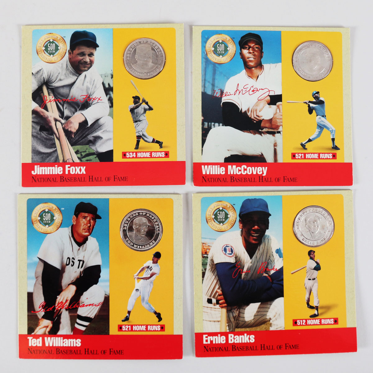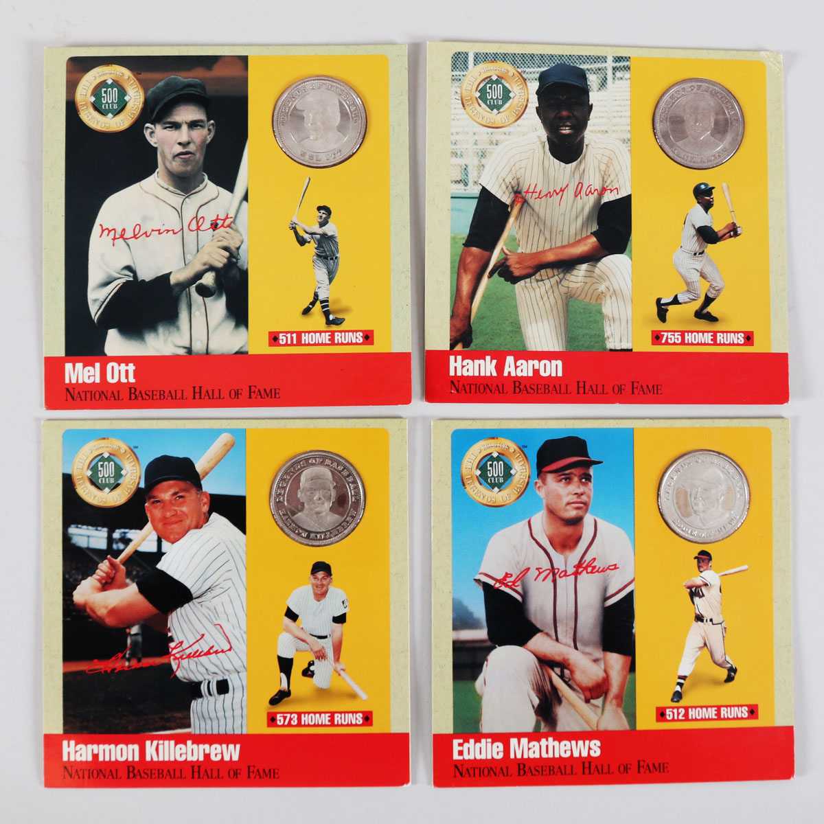 Presented is The Legends of Baseball 500 Club Silver Coin Set Fine .999 Silver Proof Set with tin. There are (12) coins in the set and they are presented on a card including Willie Mays, Frank Robinson, Mickey Mantle, Babe Ruth, Mel Ott, Hank Aaron, Eddie Mathews, Harmon Killebrew, Jimmie Foxx, Ted Williams, Willie McCovey and Ernie Banks. There is at least $250 worth of Silver at this writing