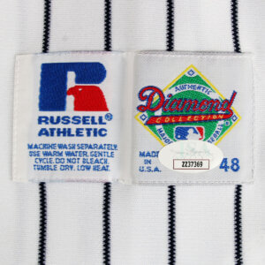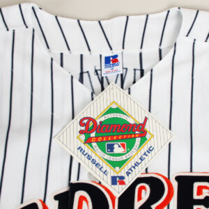 Presented is a San Diego Padres jersey that was autographed by Tony Gwynn . He signed the front of the jersey in blue felt tip (“9”) under the team logo. The jersey itself is an authentic Russell Athletic Diamond Collection [size] 48 NWT.