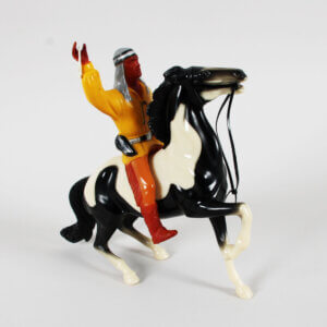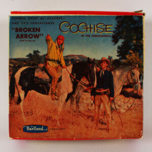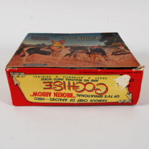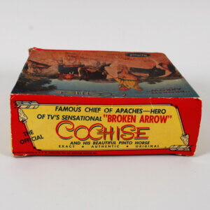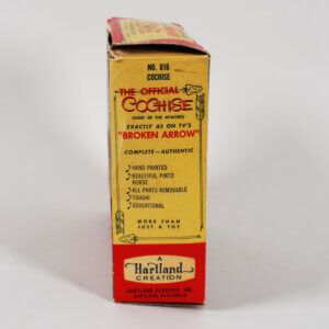 VINTAGE 1950’s HARTLAND COCHISE w/ORIGINAL BOX! This is a VINTAGE 1950s HARTLAND COCHISE SEMI-REARING PINTO inspired by the TV series “BROKEN ARROW” and its star Michael Ansara. Hartland Plastics created this figure with the same attention to detail used to bring its baseball and football figures to life. Cochise comes COMPLETE with his semi-rearing pinto, and a hard-to-find, original, excellent-condition box.