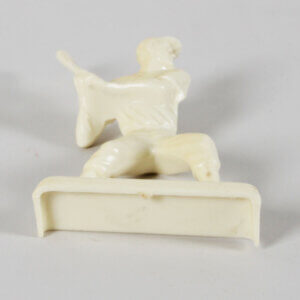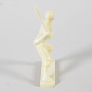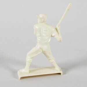 This is a Vintage 1950s original Hartland unpainted white-base minor league, which is very scarce. This statue was created along with the 18 Major League players issued between 1958-63 by the Hartland Company of Wisconsin. Created as a caketopper for a special touch on a child’s birthday cake, it also came with an unusual accessory to display it on the family car’s dashboard. It later became associated with the baseball series because of the #5 on the back; maybe a salute by those at Hartland to honor the “Yankee Clipper”, Joe DiMaggio.