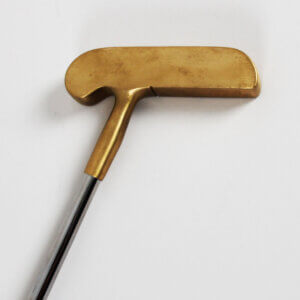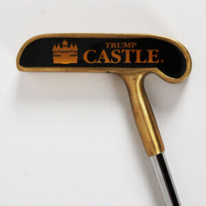 This vintage golf putter from the 1980s features the iconic Trump Castle logo, making it a unique collector’s item for golf enthusiasts and memorabilia collectors alike. Accompanied by a specially designed Trump Castle golf blue fuzzy cover with a #1 tag attached at the top, this putter not only serves as a functional piece of sporting equipment but also as a statement of luxury and nostalgia. Its craftsmanship reflects the high standards associated with the Trump brand, appealing to those who appreciate both history and style in their golfing accessories. Such an item would undoubtedly enhance any collection dedicated to the art of golf.