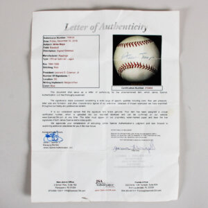 Willie Mays is one of the few living legends left in the baseball world. Not your typical Willie Mays single-signed example is this vintage ONL (White) baseball tagged in perfect blue ballpoint (“9”) with a vintage signature on the sweet spot. The ball itself features some mild toning.