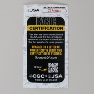 For cards and autographs appearing without professionally grading, we strive to accurately assess quality. However, BIDAMI does not guarantee their opinion and Buyer assumes the risk. BIDAMI is not responsible if a professional evaluation disagrees with BIDAMI’s opinion or with other Authenticators opinion.